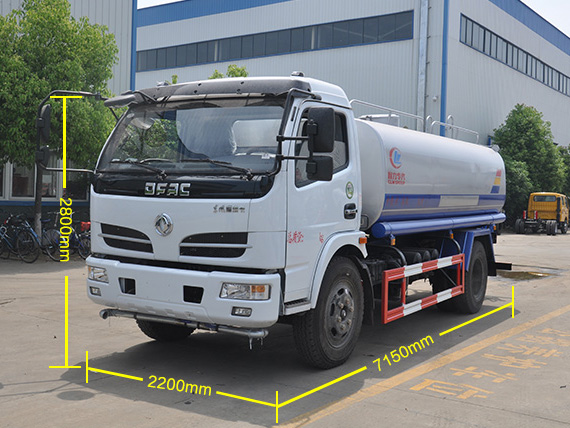 东风福瑞卡洒水车是东风家族轻量车型的代表,它和东风多利卡D7体型相近。整体尺寸为7150*2200*2800mm,轴距3800mm,罐体最大容积为10立方,完全能满足厂区、街道、路面的喷洒和冲洗工作。
