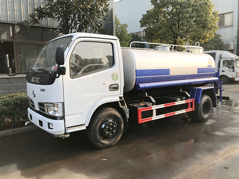 环卫洒水车车头底部装有鸭嘴形喷嘴或圆头冲嘴,后面装有圆柱形洒水喷嘴或莲蓬头喷嘴,洒水车尾部有工作平台,装配高压水炮。后部可装配8个喷嘴。