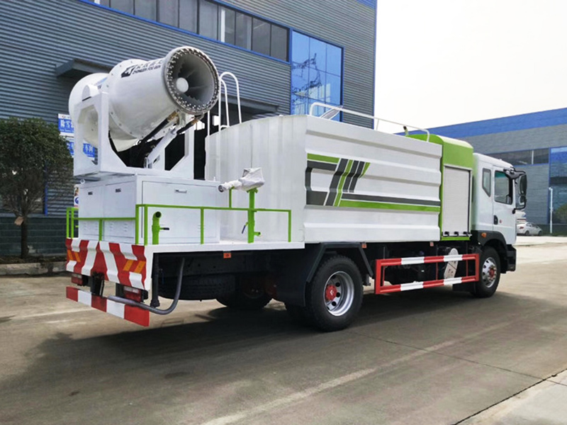 国六东风D9多功能抑尘车负载的大型雾炮可喷射120米远、70米高的水雾,相比普通洒水车,雾炮车喷出的水雾颗粒极为细小,在雾霾天气可以进行液雾降尘、分解淡化空气中的颗粒浓度、将漂浮在空气中的污染颗粒物迅速逼降地面,达到清洁净化空气的效果。同样10吨水,普通洒水车只能喷洒10分钟,而新型雾炮车可以喷洒1个小时,覆盖面积超过3万平方米,大大提高了水资源利用率。