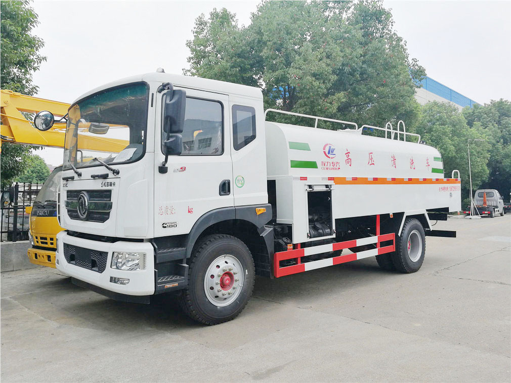 东风D9高压清洗车采用正宗东风多利卡D9新规底盘,国五康明斯180马力发动机,9.00轮胎,5.5吨前桥,8吨德纳后桥,东风6档变速箱,有空调,ABS,方向助力,离合助力。