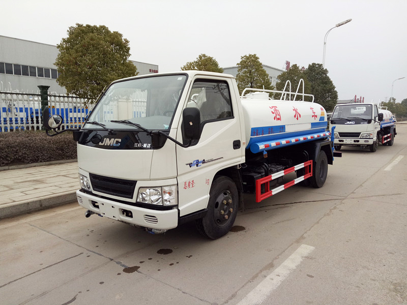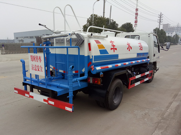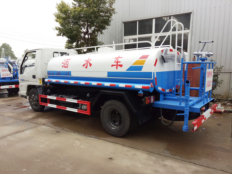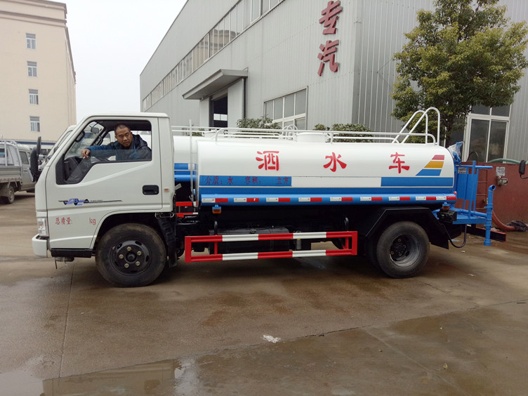 江铃顺达5吨洒水车,罐体容积5立方米,封头厚5mm,罐体采用4mm武钢优质碳钢,一次性卷压成型,无缝焊接。罐体通过高压气体试漏检测,罐内设防浪隔板,防浪防荡,车辆运载安全平稳。洒水车配备大功率专用洒水泵,自吸自排,水流量为90立方/小时,洒水车自吸高度为7米。