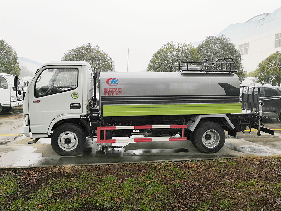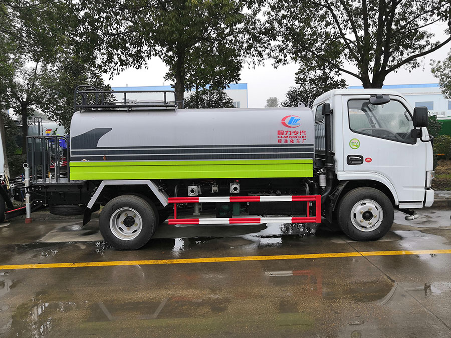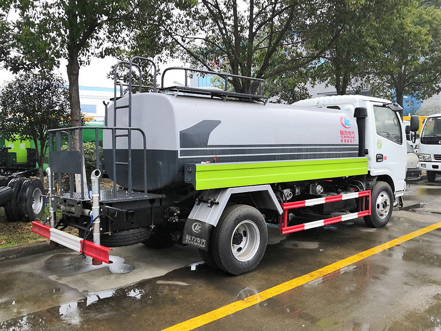东风小多利卡5吨洒水车,罐体容积5立方米,封头厚5mm,罐体采用4mm武钢优质碳钢,一次性卷压成型,无缝焊接。罐体通过高压气体试漏检测,罐内设防浪隔板,防浪防荡,车辆运载安全平稳。洒水车配备大功率专用洒水泵,自吸自排,水流量为90立方/小时,洒水车自吸高度为7米。