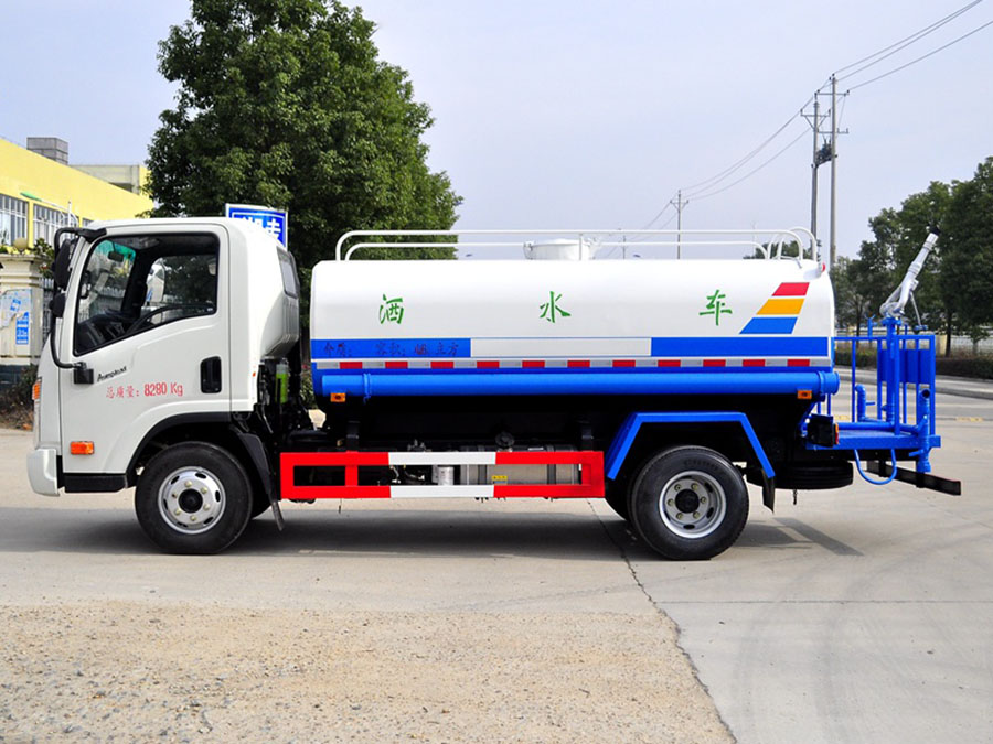大运奥普力5吨洒水车,罐体采用4mm厚碳钢板制作,罐体容积5吨,罐内设防浪隔板,防浪防荡,配备大功率专用洒水泵。前冲(喷)后洒,带侧喷,后置工作平台,平台上安装绿化洒水高压炮(炮喷射形状可调成直冲状、大雨、中雨、毛毛雨、炮可360度旋转,射程≧25米)。带自流阀,消防接口。带自吸泵,可抽水或从消防栓上连接注水。