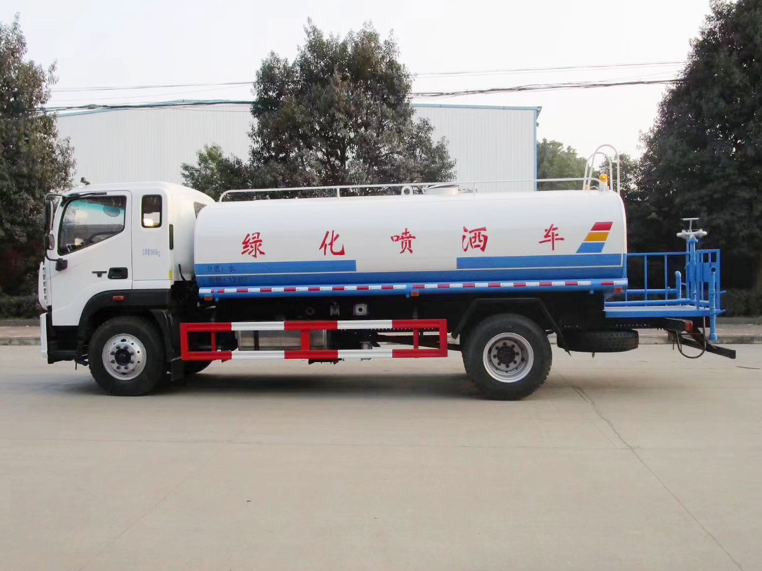 【洒水车标配】前冲、后洒、侧喷,高位侧花洒、尾部工作平台、高压水炮等,洒水车最大洒水宽度20米,水炮可360度旋转,可调节成直冲撞、大雨、中雨、小雨、毛毛雨等不同状态,柱状最大射程为35米,雾状最大射程为15米,用于公路洒水,园林浇灌,冲洗高大树木等。洒水车还配备了消防接口,可用于紧急消防工作。