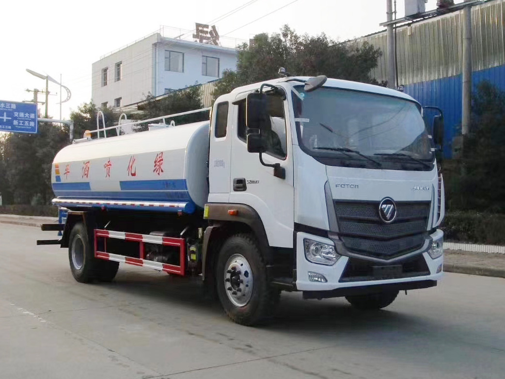 12吨福田瑞沃洒水车,罐体容积12立方米,封头厚度5mm,罐体采用4mm武钢优质碳钢,一次性卷压成型,无缝焊接。罐体通过高压气体试漏检测,罐内设防浪隔板,防浪防荡,车辆运载安全平稳。洒水车配备大功率专用洒水泵,自吸自排,水流量为90立方/小时,洒水车自吸高度为7米。