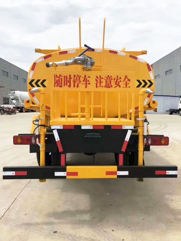 【洒水车标配】前冲、后洒、侧喷,高位侧花洒、尾部工作平台、高压水炮等,洒水车最大洒水宽度14米,水炮可360度旋转,可调节成直冲撞、大雨、中雨、小雨、毛毛雨等不同状态,柱状最大射程为28米,雾状最大射程为15米,用于公路洒水,园林浇灌,冲洗高大树木等。洒水车还配备了消防接口,可用于紧急消防工作。