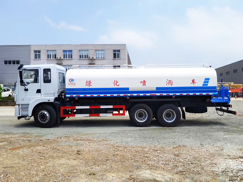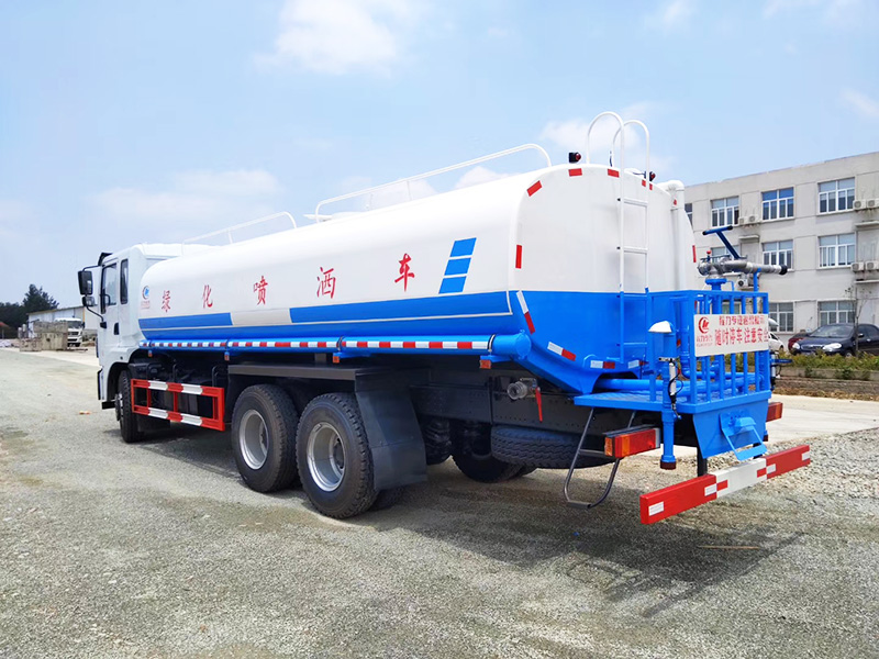 东风锦程20吨洒水车,罐体容积20立方米,封头厚度5mm,罐体采用4mm武钢优质碳钢,一次性卷压成型,无缝焊接。罐体通过高压气体试漏检测,罐内设防浪隔板,防浪防荡,车辆运载安全平稳。洒水车配备大功率专用洒水泵,自吸自排,水流量为90立方/小时,洒水车自吸高度为7米。