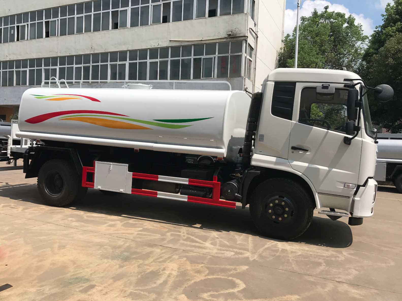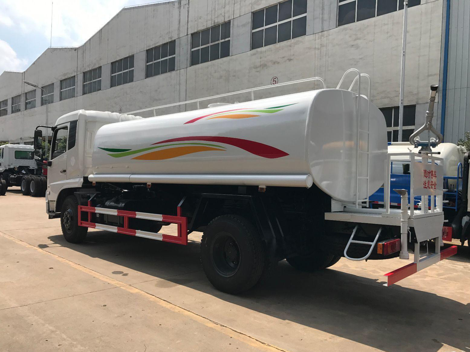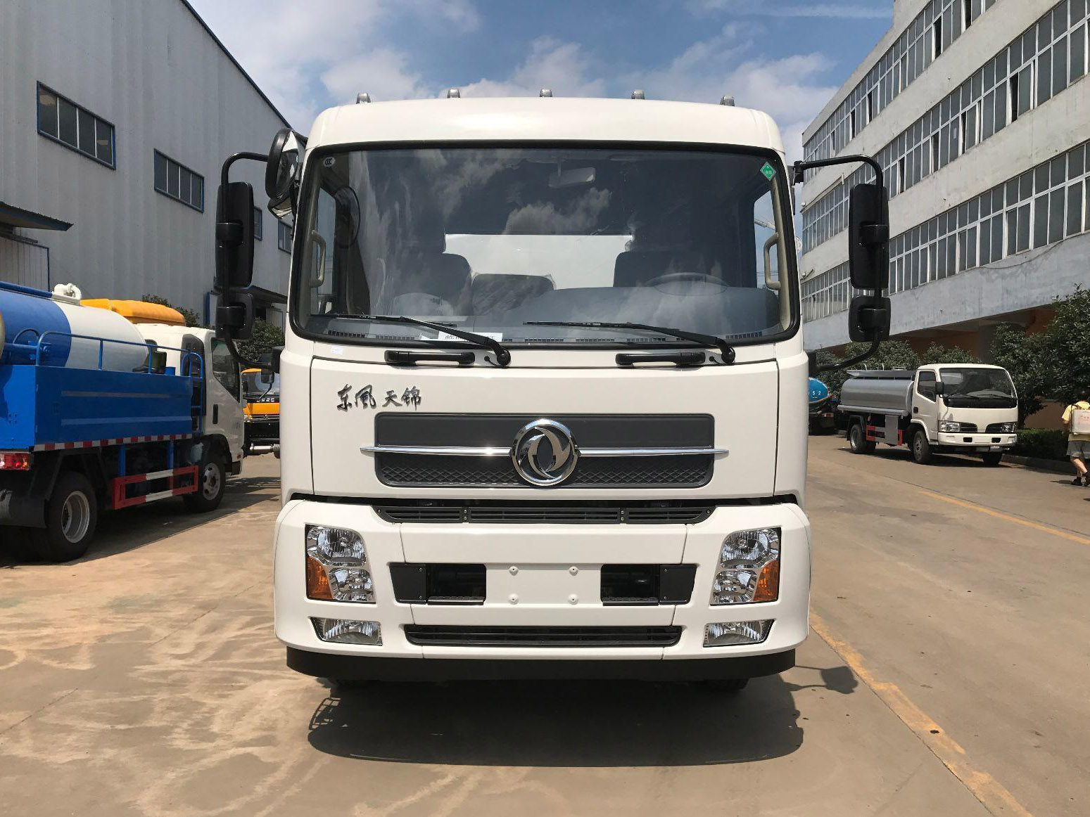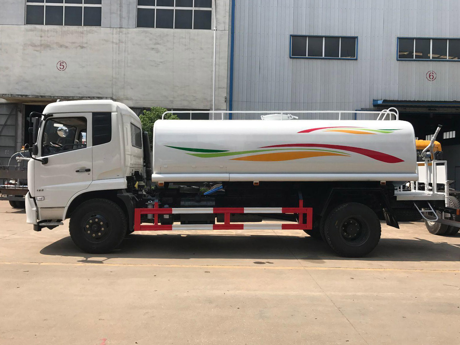 东风天锦15吨洒水车罐体容积15立方米,封头厚度5mm,罐体采用4mm武钢优质碳钢,一次性卷压成型,无缝焊接。罐体通过高压气体试漏检测,罐内设防浪隔板,防浪防荡,车辆运载安全平稳。洒水车配备大功率专用洒水泵,自吸自排,水流量为90立方/小时,洒水车自吸高度为7米。
