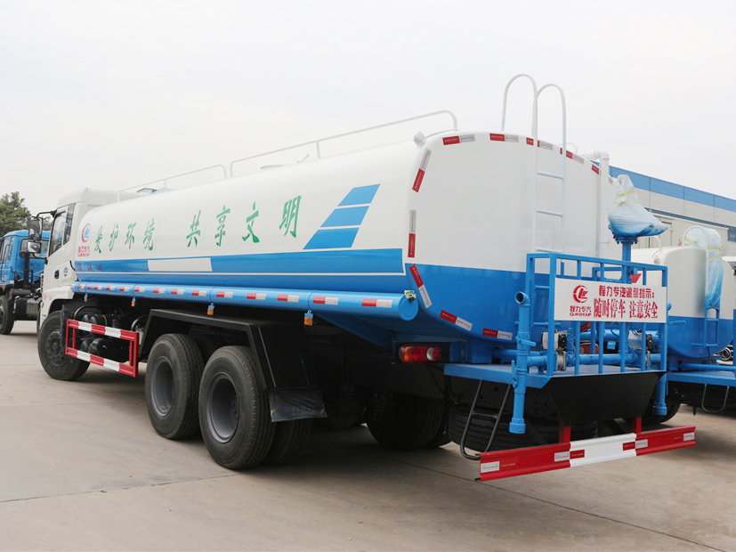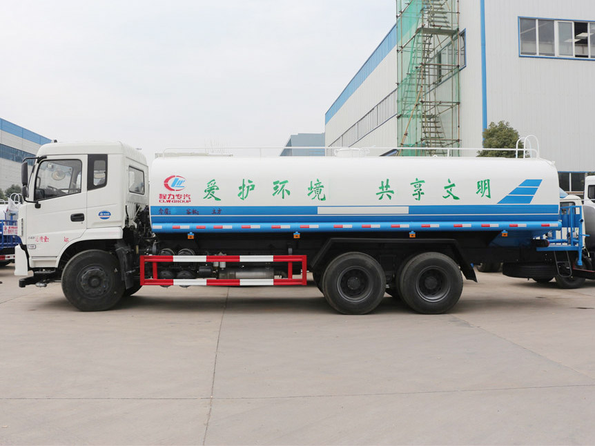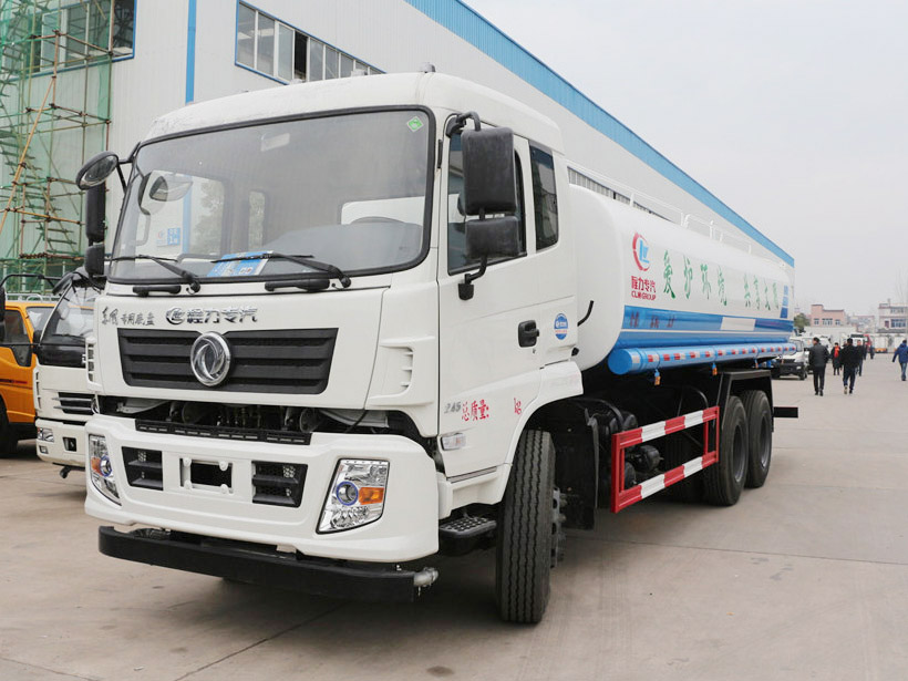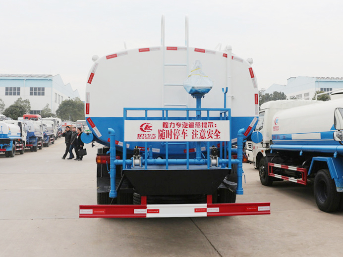 20吨东风专底洒水车,罐体容积20立方米,封头厚度5mm,罐体采用4mm武钢优质碳钢,一次性卷压成型,无缝焊接。罐体通过高压气体试漏检测,罐内设防浪隔板,防浪防荡,车辆运载安全平稳。洒水车配备大功率专用洒水泵,自吸自排,水流量为90立方/小时,洒水车自吸高度为7米。
