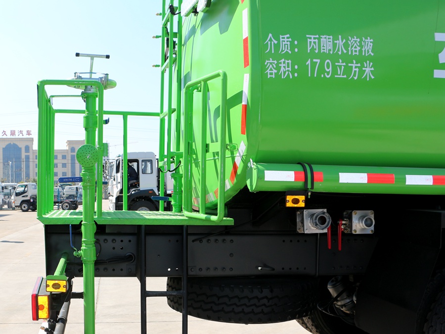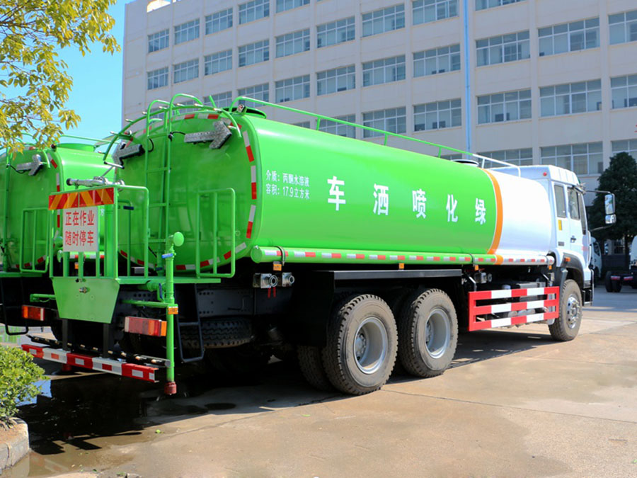 【洒水车标配】前冲、后洒、侧喷,高位侧花洒、尾部工作平台、高压水炮等,洒水车最大洒水宽度20米,水炮可360度旋转,可调节成直冲撞、大雨、中雨、小雨、毛毛雨等不同状态,柱状最大射程为35米,雾状最大射程为15米,用于公路洒水,园林浇灌,冲洗高大树木等。洒水车还配备了消防接口,可用于紧急消防工作。