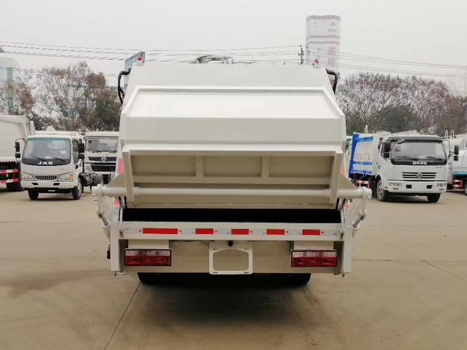 江淮6方压缩式垃圾车,弧形箱体,容积约6立方,可装垃圾4.5吨,采用特种钢板制作,箱体底板4mm,边板4mm,厦门银华油缸,江苏多路阀,长源液压油泵,填装器举升油缸带液压锁装置,采用进口西门子PLC电控系统(带一键操作,和手动操作两种控制方式),电控操作盒三只。带2个污水收集箱,尾部带橡胶密封条。填充器加装后照明灯,箱体油漆及喷字按用户要求定制。
