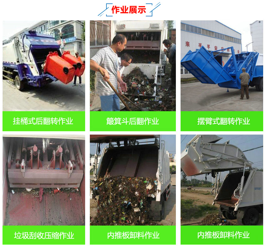 选装后翻转机构:1、挂塑料桶式翻转机构;2、挂铁桶式翻转机构;3、摆臂式翻转机构; 4、簸箕斗式翻转机构。