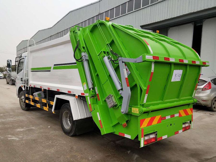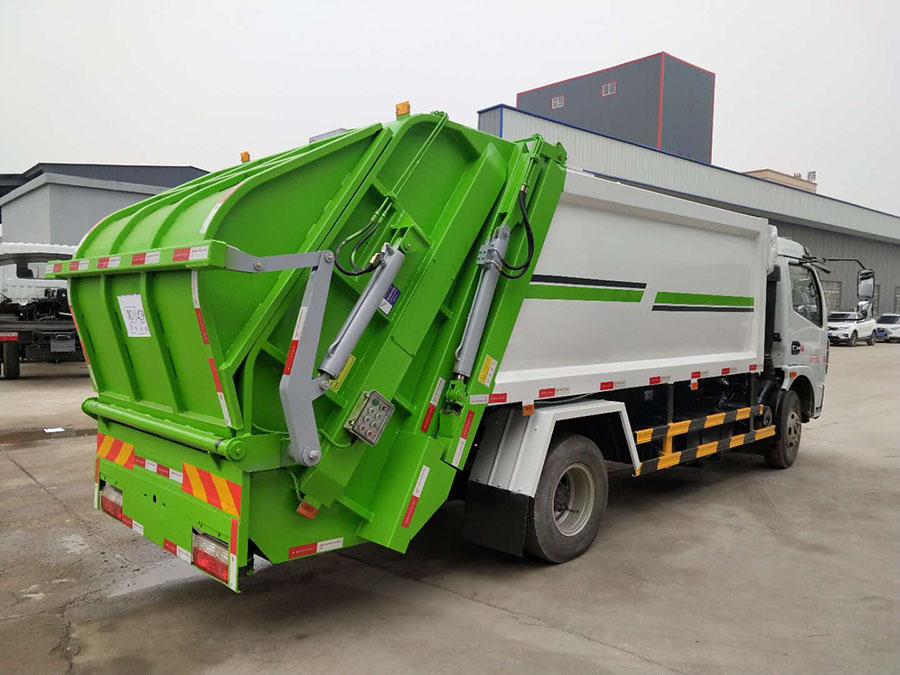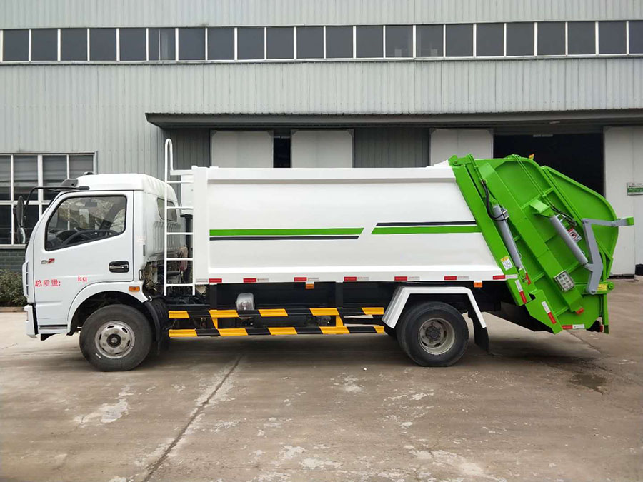 东风多利卡8方压缩式垃圾车,弧形箱体,厢体容积8立方,可装垃圾6吨,采用特种钢板制作,箱体底板4mm,边板4mm,厦门银华油缸,江苏多路阀,长源液压油泵,填装器举升油缸带液压锁装置,采用进口西门子PLC电控系统(带一键操作,和手动操作两种控制方式),电控操作盒三只。带2个污水收集箱,尾部带橡胶密封条。填充器加装后照明灯,箱体油漆及喷字可按用户要求定制。
