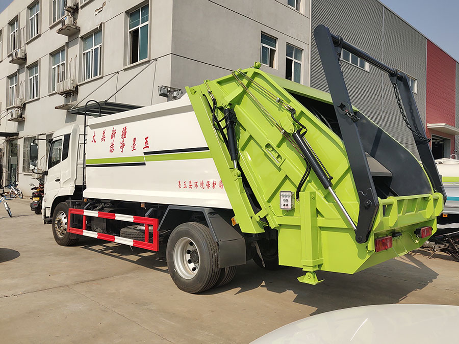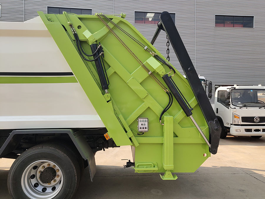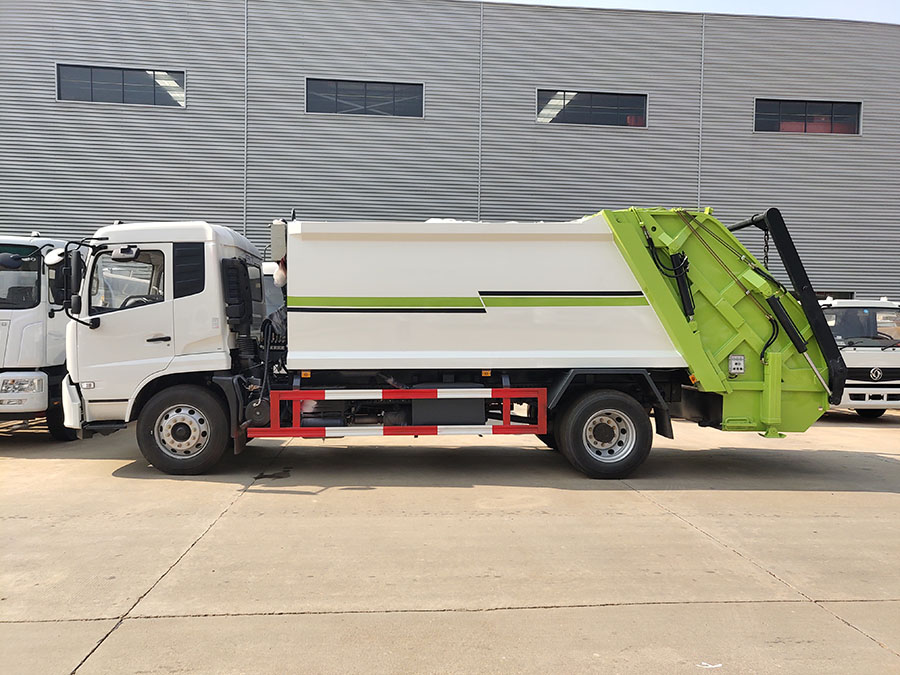 东风天锦12方压缩式垃圾车,弧形箱体,容积约12-14立方,可装垃圾10-12吨,采用特种钢板制作,箱体底板5mm,边板5mm,厦门银华油缸,江苏多路阀,长源液压油泵,填装器举升油缸带液压锁装置,采用进口西门子PLC电控系统(带一键操作,和手动操作两种控制方式),电控操作盒三只。带3个污水收集箱,尾部带橡胶密封条。填充器加装后照明灯,箱体油漆及喷字可按用户要求定制。