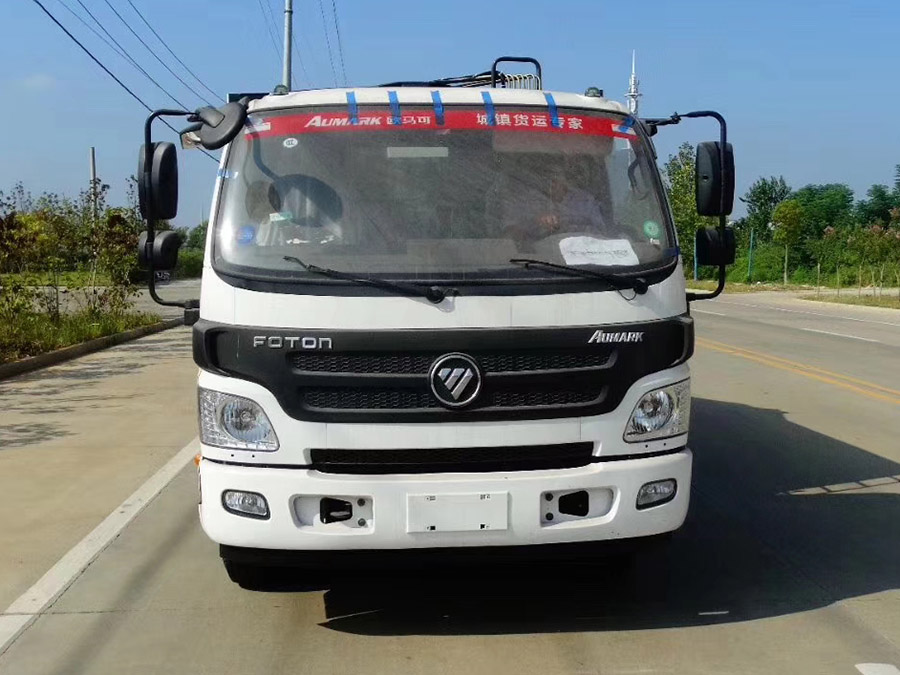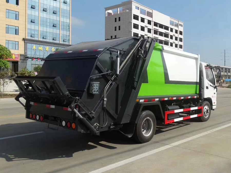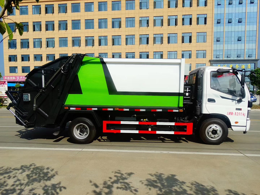 福田欧马可8方压缩式垃圾车,弧形箱体,厢体容积8立方,可装垃圾6吨,采用特种钢板制作,箱体底板4mm,边板4mm,厦门银华油缸,江苏多路阀,长源液压油泵,填装器举升油缸带液压锁装置,采用进口西门子PLC电控系统(带一键操作,和手动操作两种控制方式),电控操作盒三只。带2个污水收集箱,尾部带橡胶密封条。填充器加装后照明灯,箱体油漆及喷字可按用户要求定制。