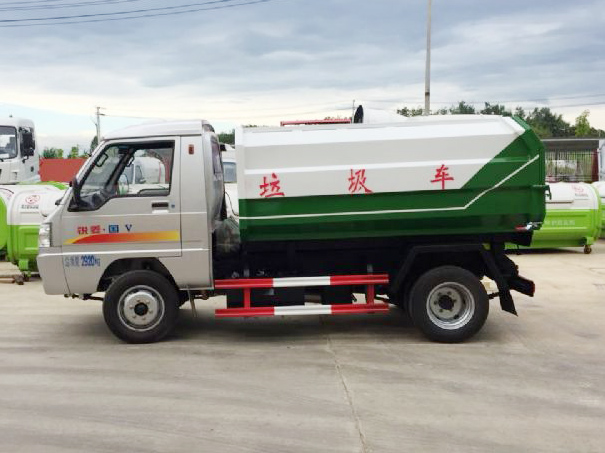 3方凯马挂桶垃圾车,厢体有效容积为3立方,箱体采用边四底五碳钢板制作,箱体前部侧面带有挂桶提升机构,配稳定性高的链条式提升机,可自动举升垃圾桶倒入垃圾,带自卸功能,尾部装有橡胶密封条,防污水滴漏,挂桶垃圾车可根据客户要求搭配120升或240升塑料桶和铁桶。
