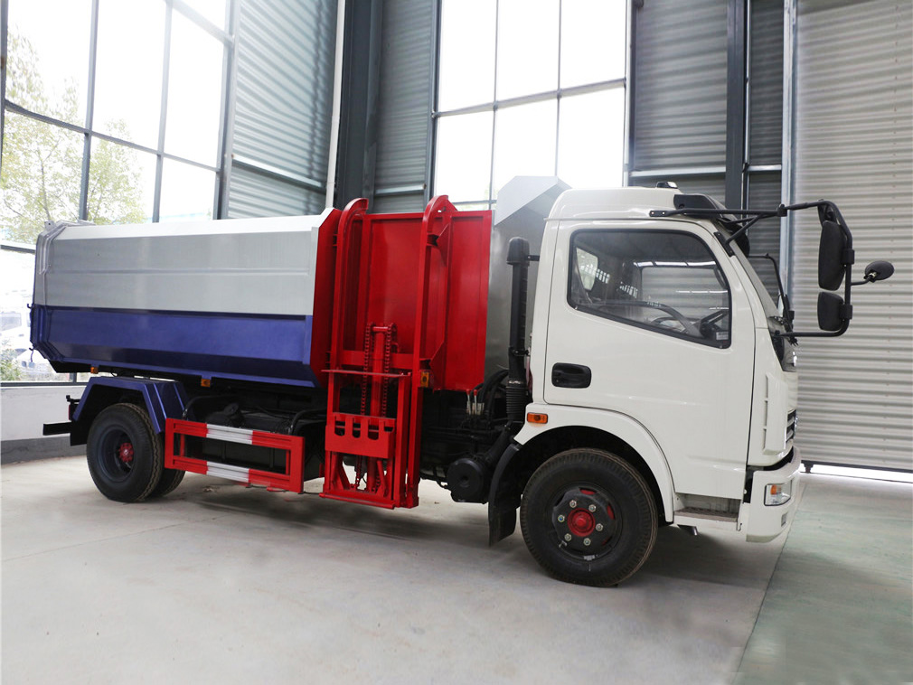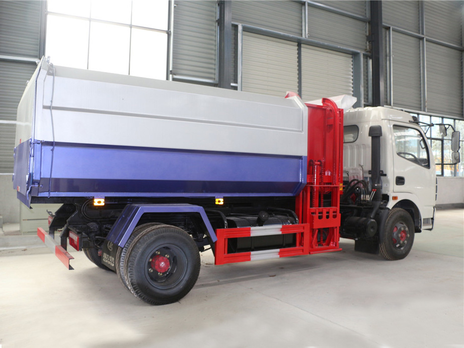 5方东风小多利卡挂桶式垃圾车,厢体有效容积为5立方,箱体采用边四底五碳钢板制作,箱体前部侧面带有挂桶提升机构,配稳定性高的链条式提升机,可自动举升垃圾桶倒入垃圾,带自卸功能,尾部装有橡胶密封条,防污水滴漏,挂桶垃圾车可根据客户要求搭配120升或240升塑料桶和铁桶。