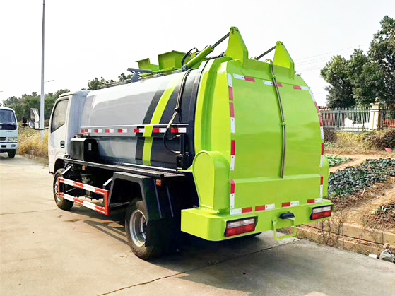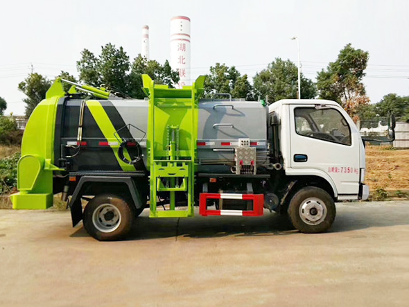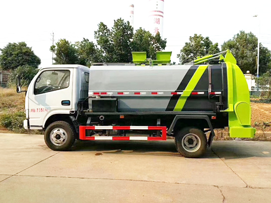 东风多利卡5方餐厨垃圾车,全新款式箱体工艺,有效容积5立方米,车身右侧配液压挂桶提升机构,可挂国标120/240升垃圾桶,液压完成提桶倾倒作业,尾门为液压开启锁闭装置,可保证滴水不漏,箱体内部设有液压推板,可装垃圾推出卸料,带固液分离装置,标配液压马达带高压柱塞泵,配移动高压清洗枪。选装密闭式绞龙卸料装置、选装不锈钢材质箱体、选装罐内加热装置。