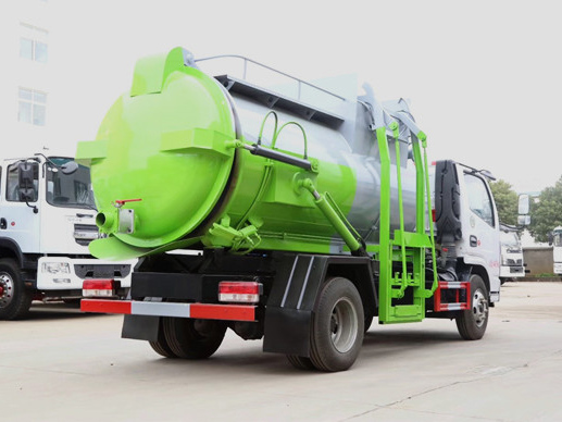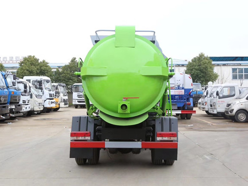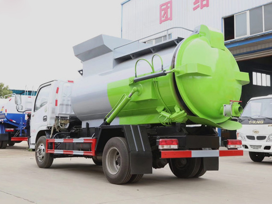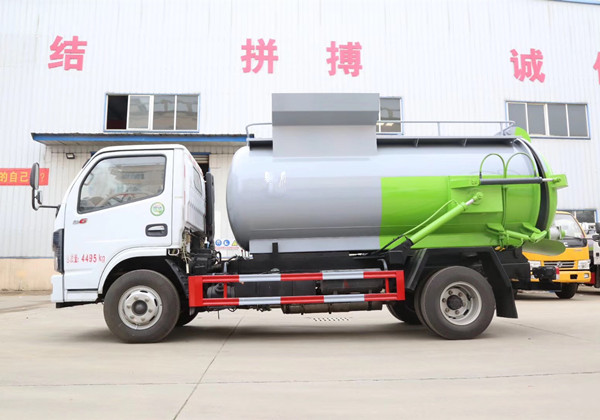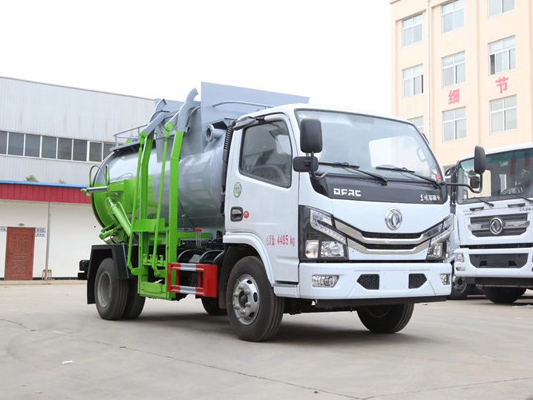 国六东风多利卡5方餐厨垃圾车,罐体采用 4mm 优质碳钢制作,圆形罐体,罐体前后封头采用圆弧蝶形封头,配拉杆式提升机,罐体底部配双缸液压举升自卸,罐体尾门液压打开和锁紧+手动锁紧装置,罐内设固液分离装置,罐尾设液体自流阀,液位窗,后门液压开启,带工具箱,洗手装置。