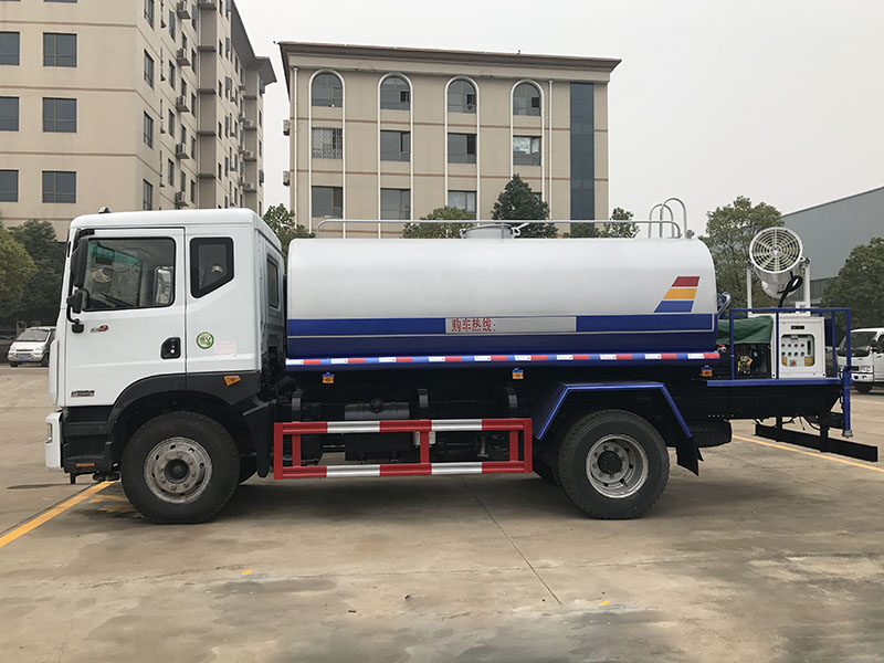 洒水车冲洗最大宽度14米,用于路面冲洗,侧喷最大喷洒宽度12米,用于绿化浇灌,后洒最大宽度为10米,用于路面加湿降湿压尘,高压水炮可360°旋转,可连续调节成柱状、开花状、雨状、半雾状水流,柱状最大射程28米,用于路面冲洗、应急消防、冲洗高大树木,绿化浇灌等工作,高位花洒用于园林绿化喷洒等。